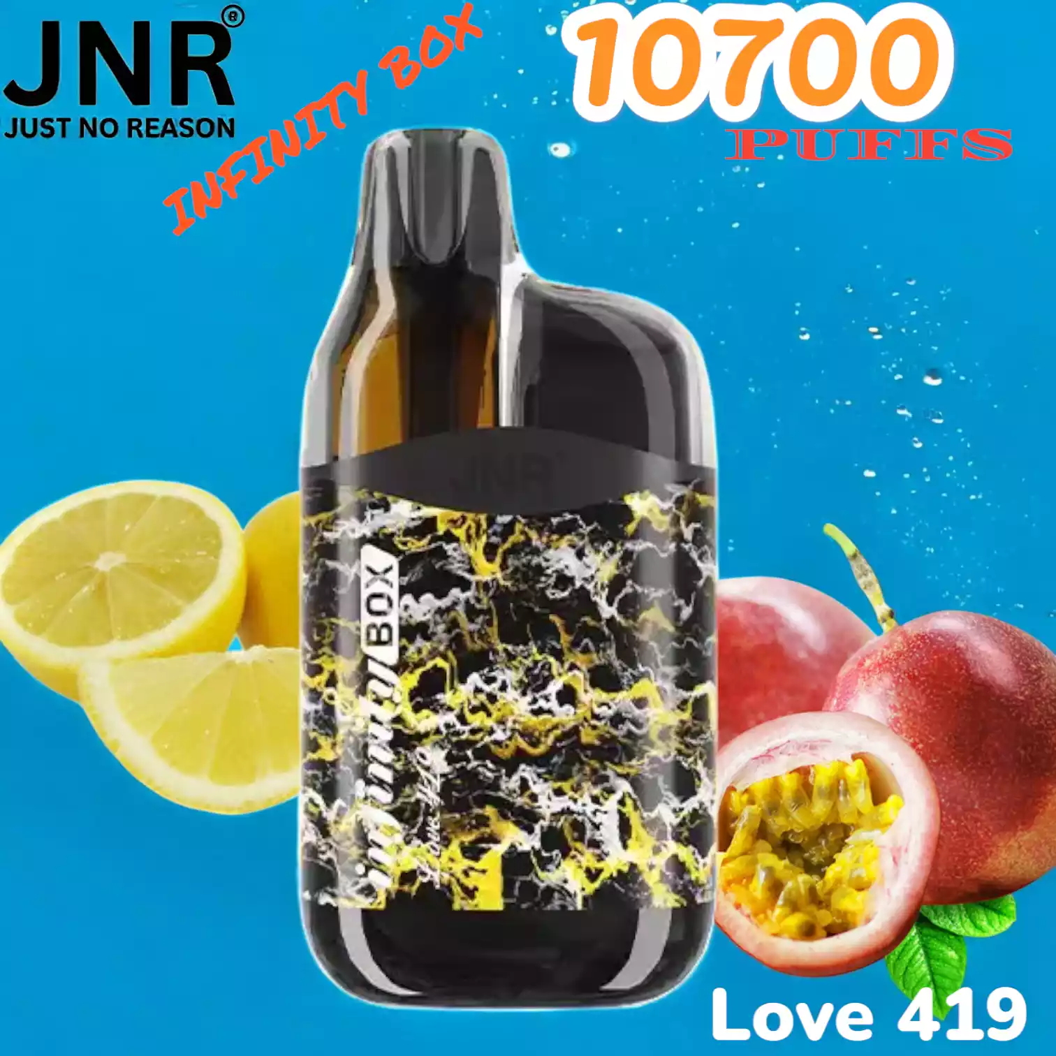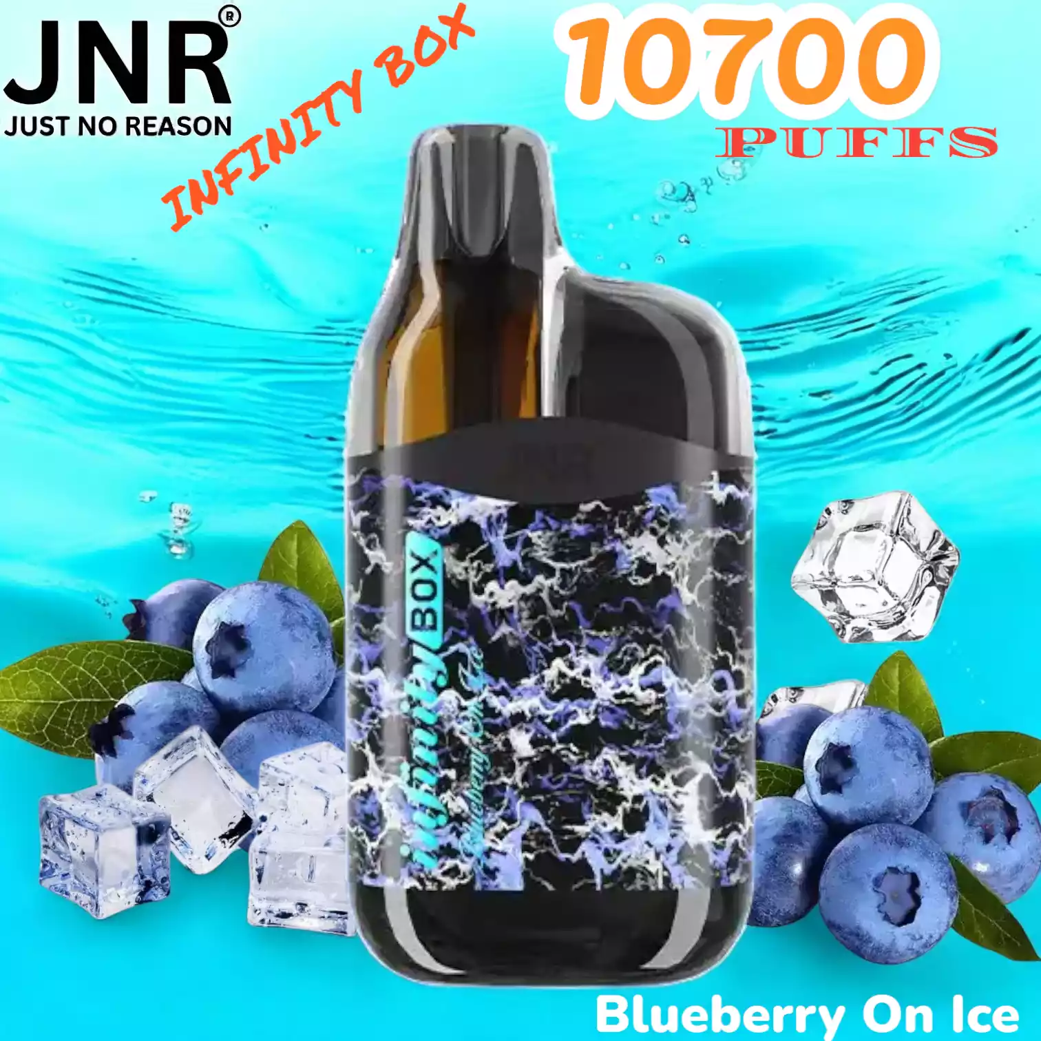 Ontdek de JNR Infinity Box 10700 PUFFS met 15ml e-liquid, 2200mAh batterij en 10.700 trekjes. Krachtige wegwerp vape, direct gebruiksklaar.