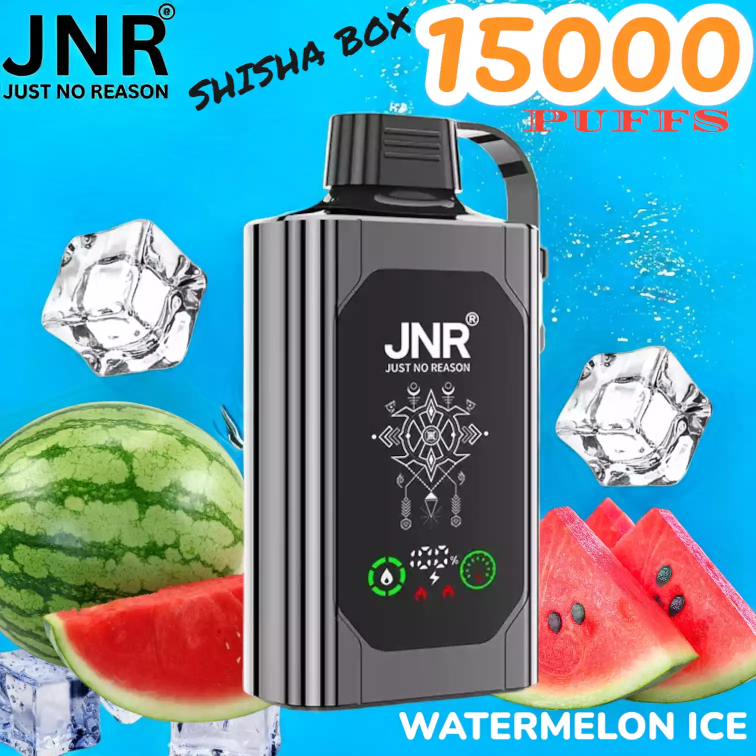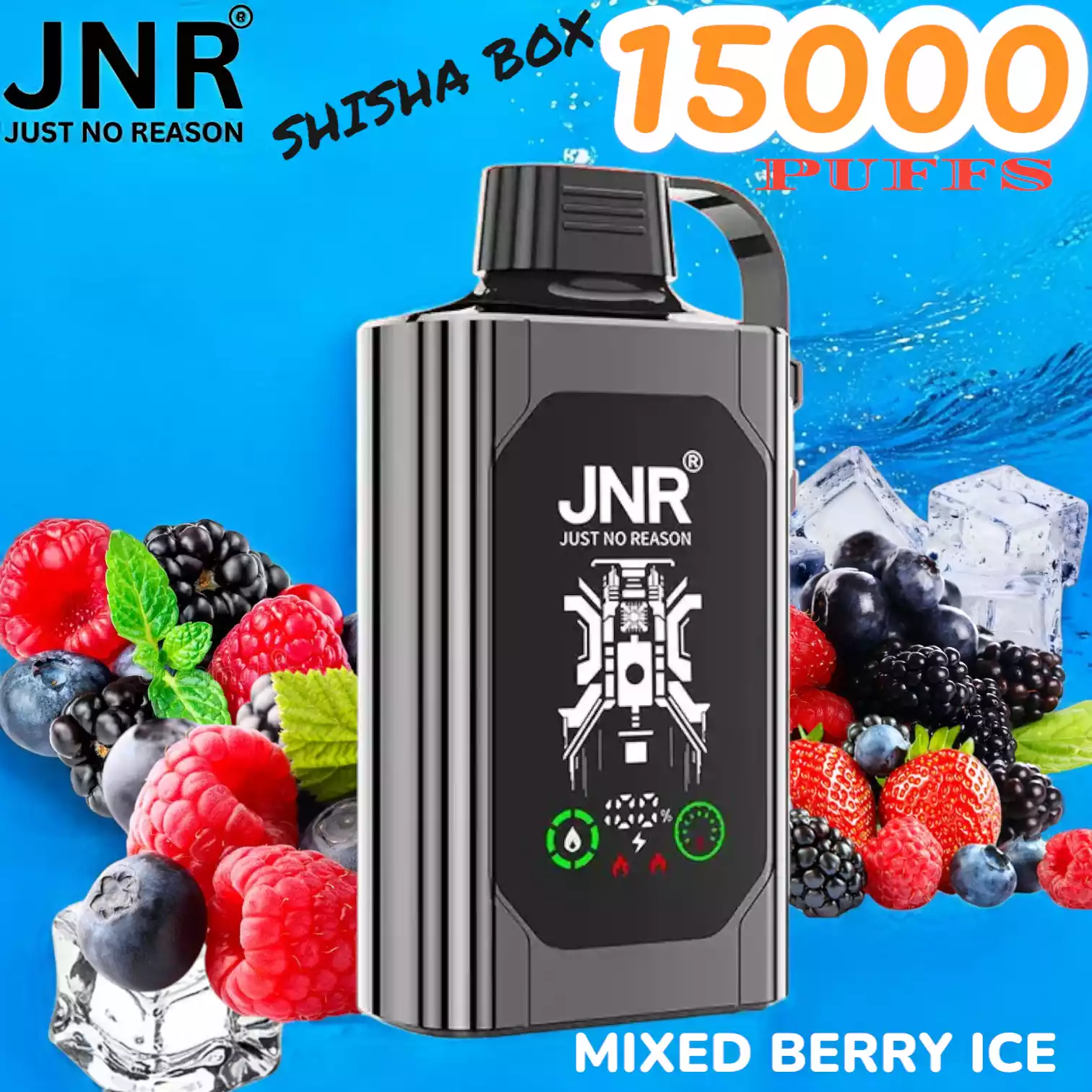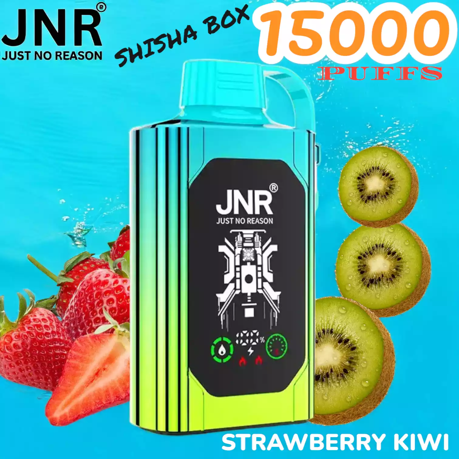 JNR SHISHA BOX 15000 PUFFS met 5% nicotine, mesh coil, 16ml e-liquid en 750mAh batterij voor krachtige, langdurige vape-ervaring.