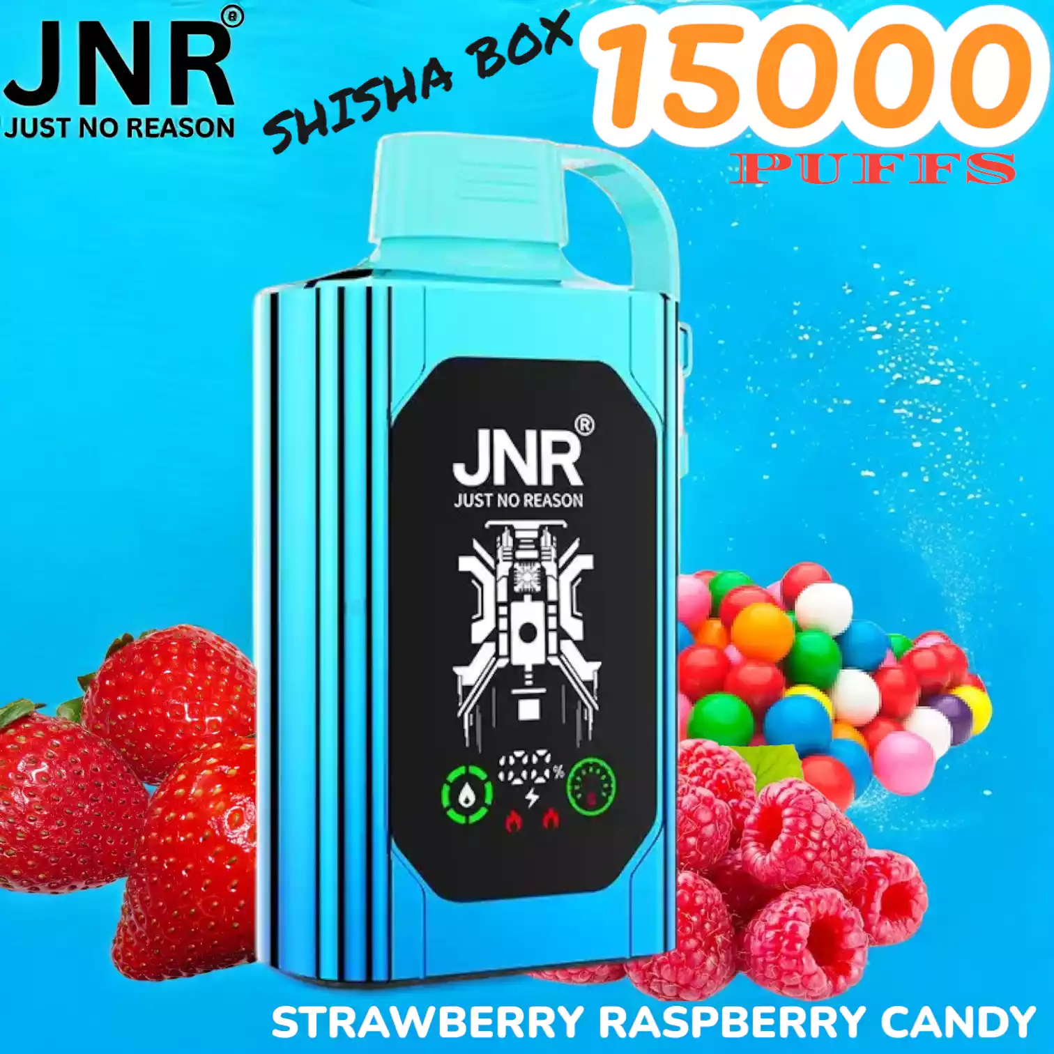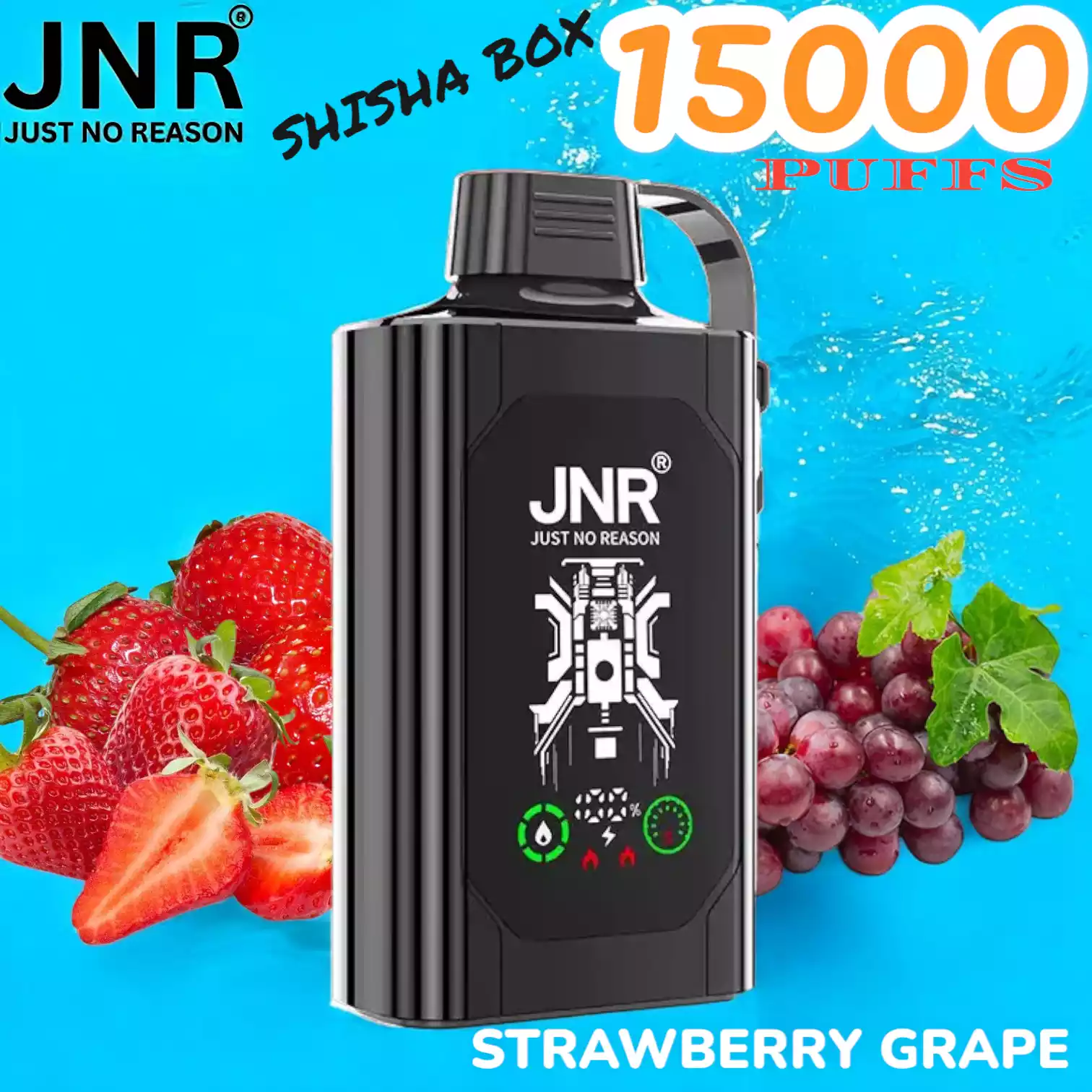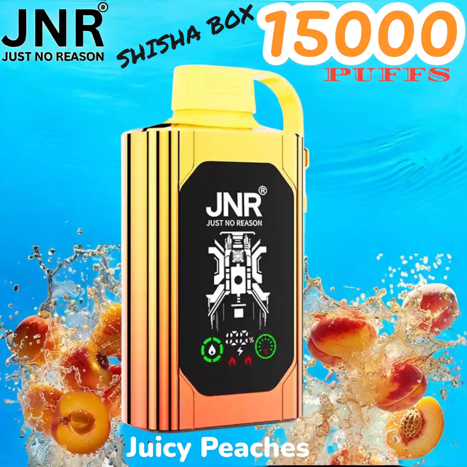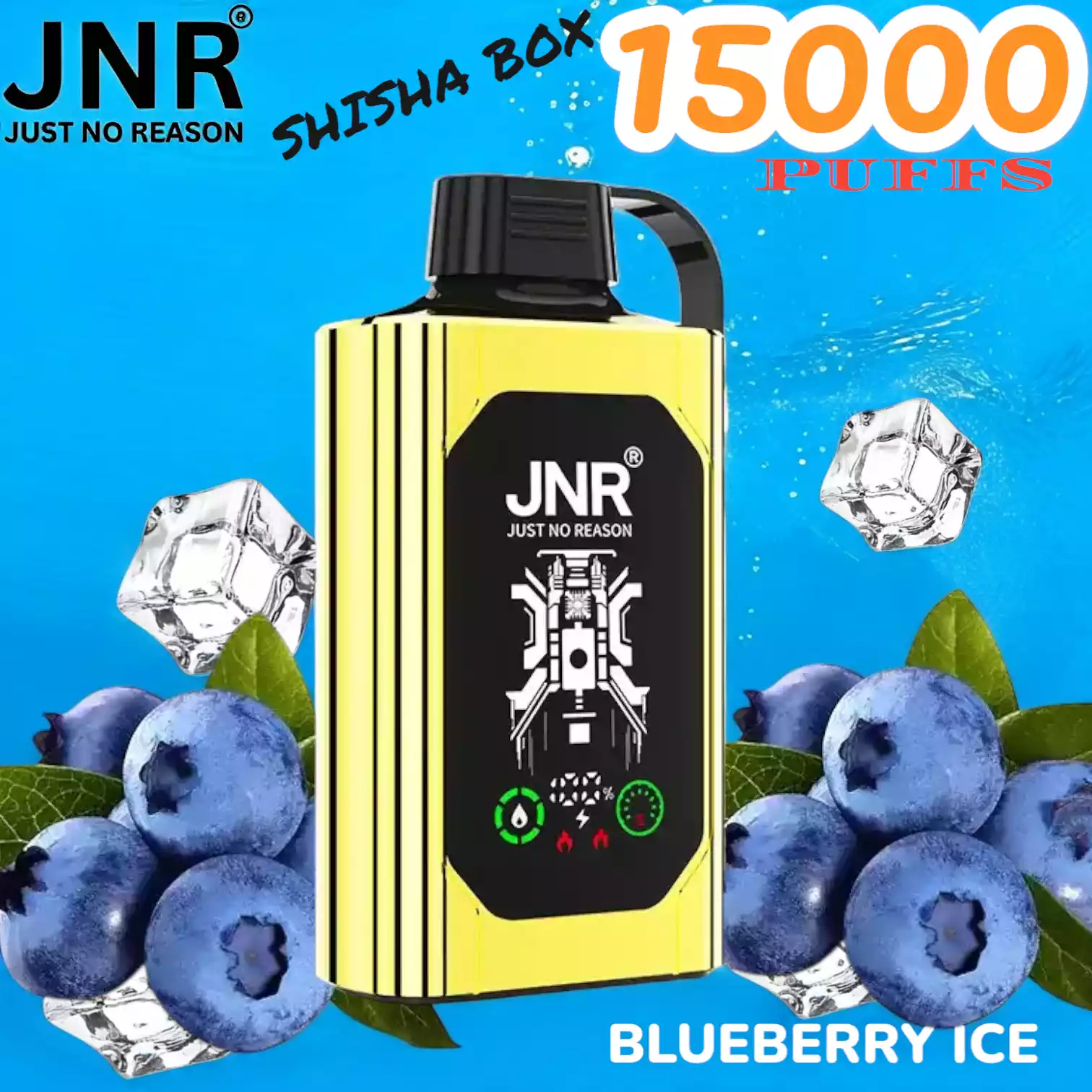 JNR SHISHA BOX 15000 PUFFS met 5% nicotine, mesh coil, 16ml e-liquid en 750mAh batterij voor krachtige, langdurige vape-ervaring.