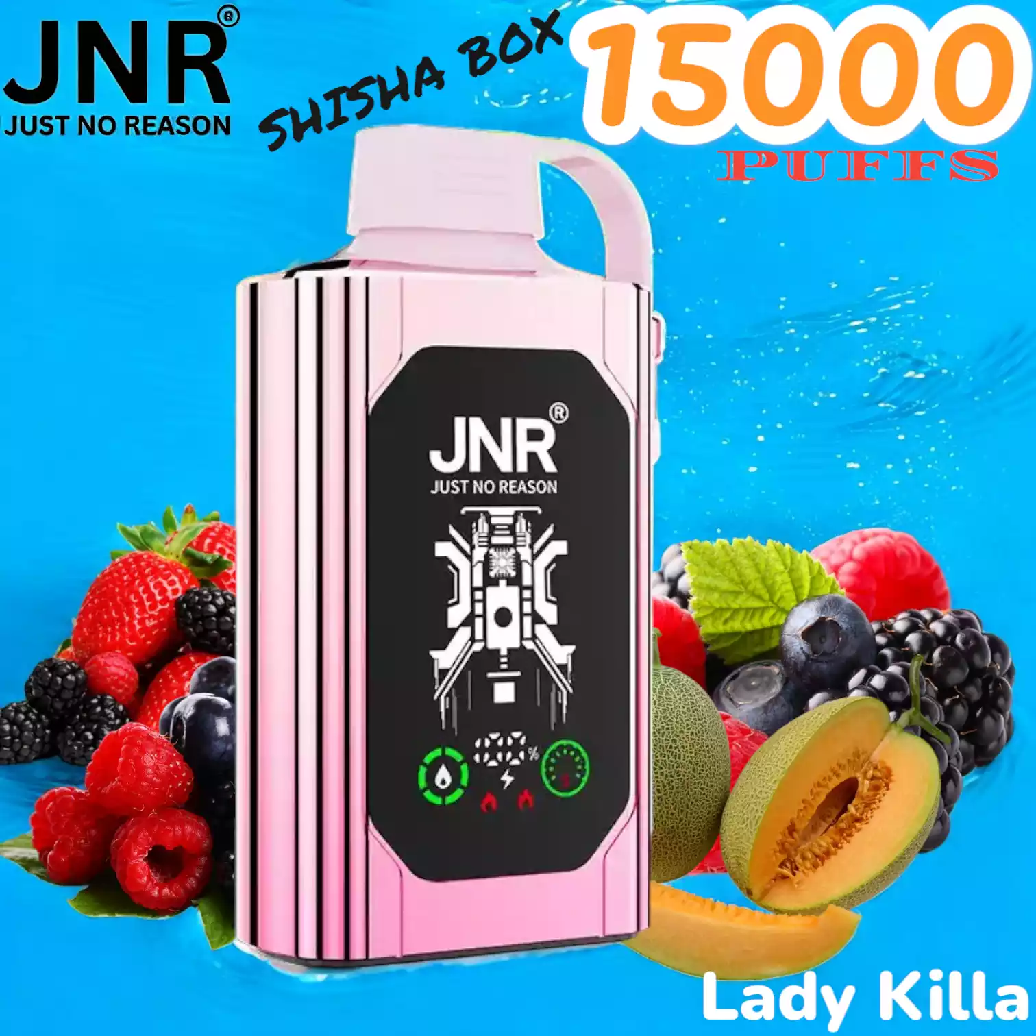 • De JNR SHISHA BOX 15000 PUFFS biedt een tussenweg tussen de krachtige jnr mediamax en de compacte jnr butterfly.